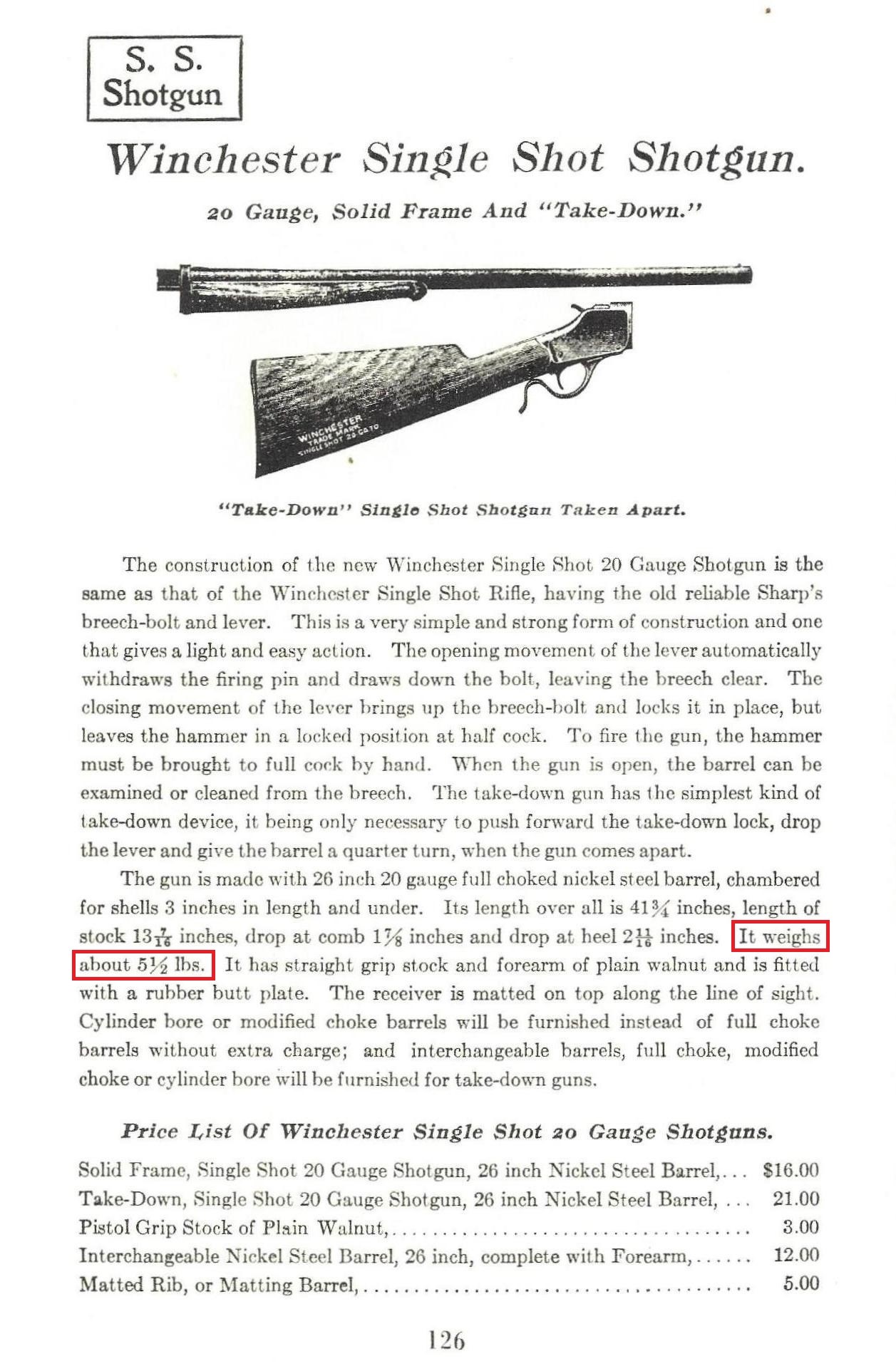 You apparently have not ever tried to shoot an original Single Shot high-wall 20-ga shotgun… I challenge you to shoot even a half box of standard 2.75″ No. 4, 5, or 6 shot shells through it. The high-wall shotguns as manufactured by Winchester weighed just 5.5 lbs. I stopped shooting mine after just (6) shells and have not tried to shoot it again since (I purchased it at the January 2001 Las Vegas Antique Arms show, and then took it out shooting in the Spring of 2001).