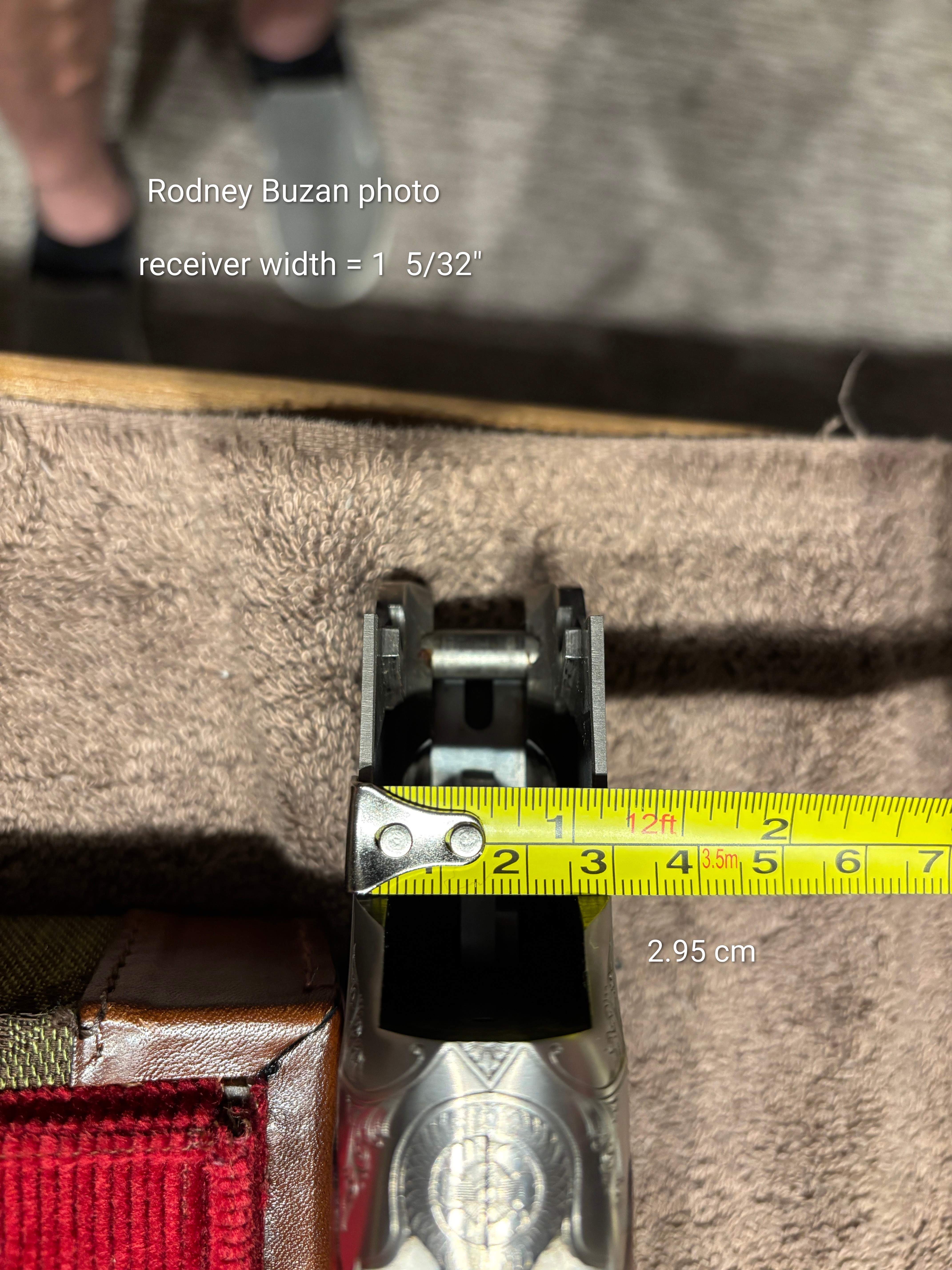 Geoff, Here I am again and not sure what to think. Your gun is 3/4 pound lighter than mine, but receiver width measurements are almost the same. Where yours measures 1.47″ mine is 1.432″. At the hinge pin, yours is 1.41″ and mine is 1.382″. Visually, it looks like the fences are cut straight across and mine are radiused. You have a more expensive file-cut rib that is wider than my rib.
