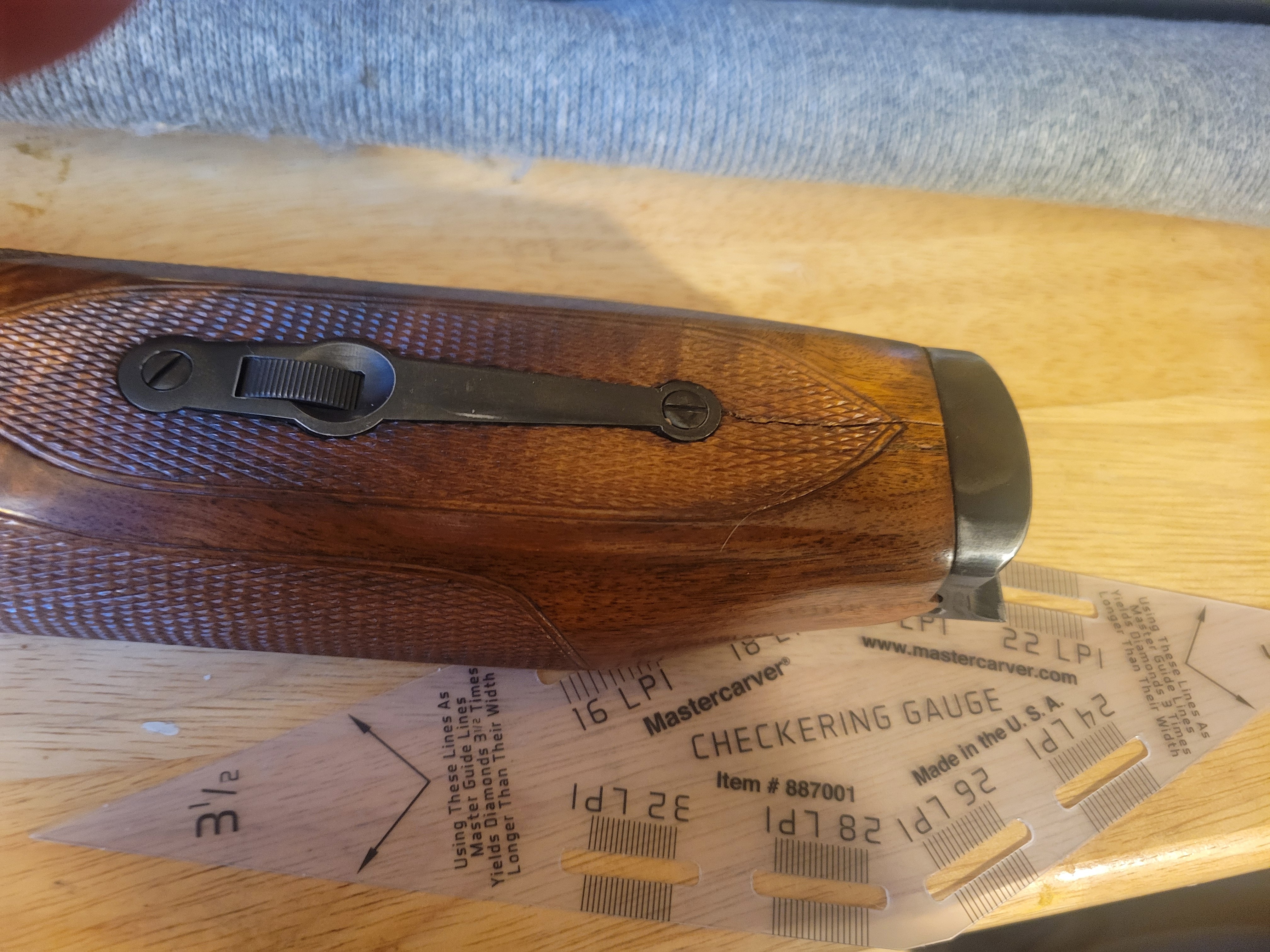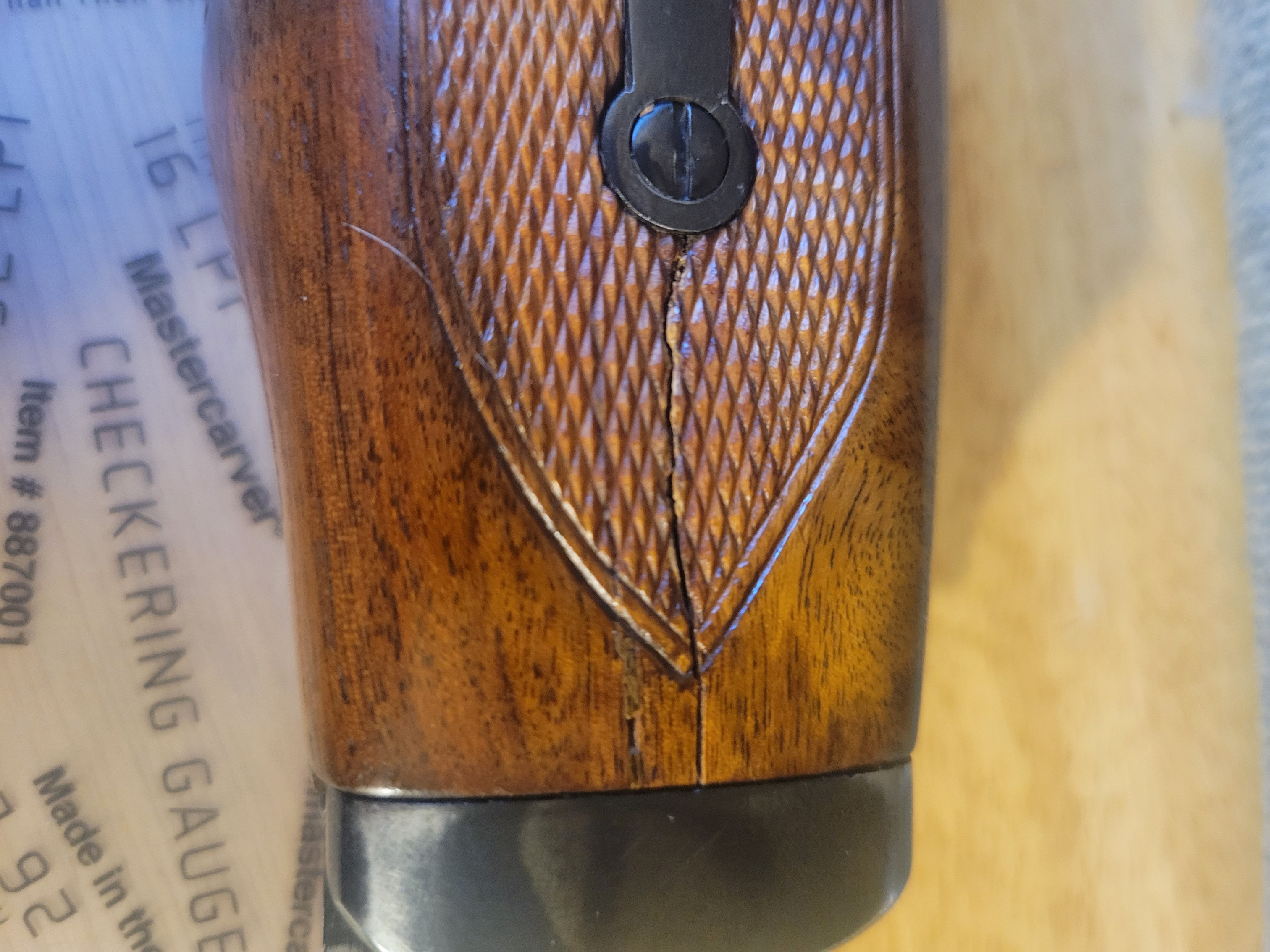 In any event, I want to know what caused the crack and how to avoid repeating it. Ron will know the answers. He also has the skill to minimize the crack through checkering. Ive done that work on a Sweet 16 forearm but this job is well above my pay grade.