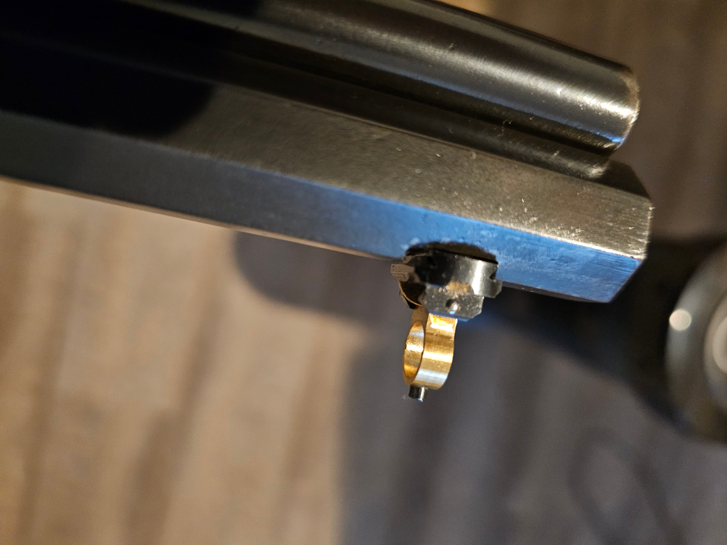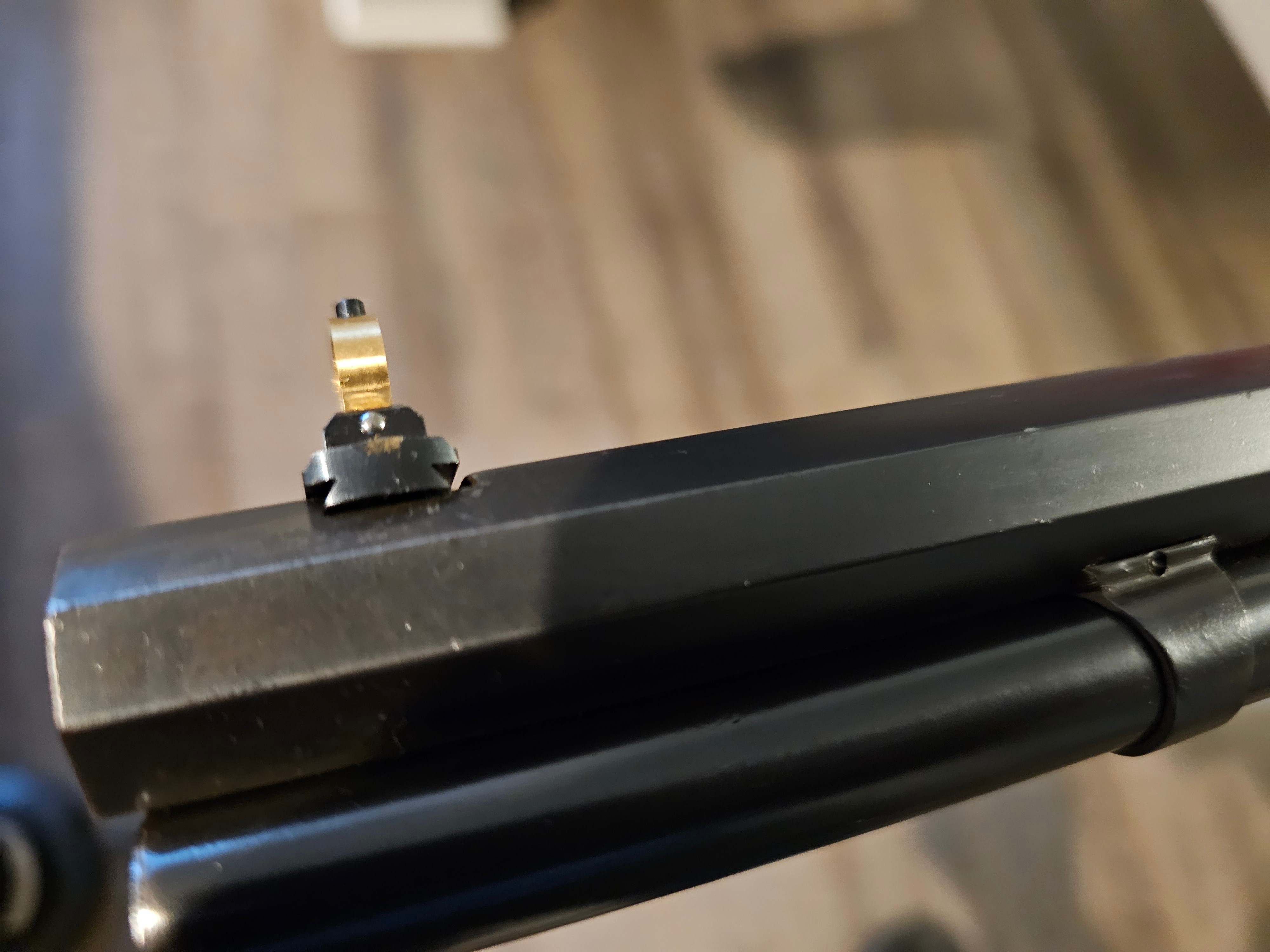 OfflineYour kind of stuck with the sights because what I see is you have a repo beach front sight thats too tall and the dove tail in the barrel is wider than the sight dovetail so I don’t understand how its held in. The rear barrel sight has two dovetails cut in the barrel so you will never be able to get it to look original.