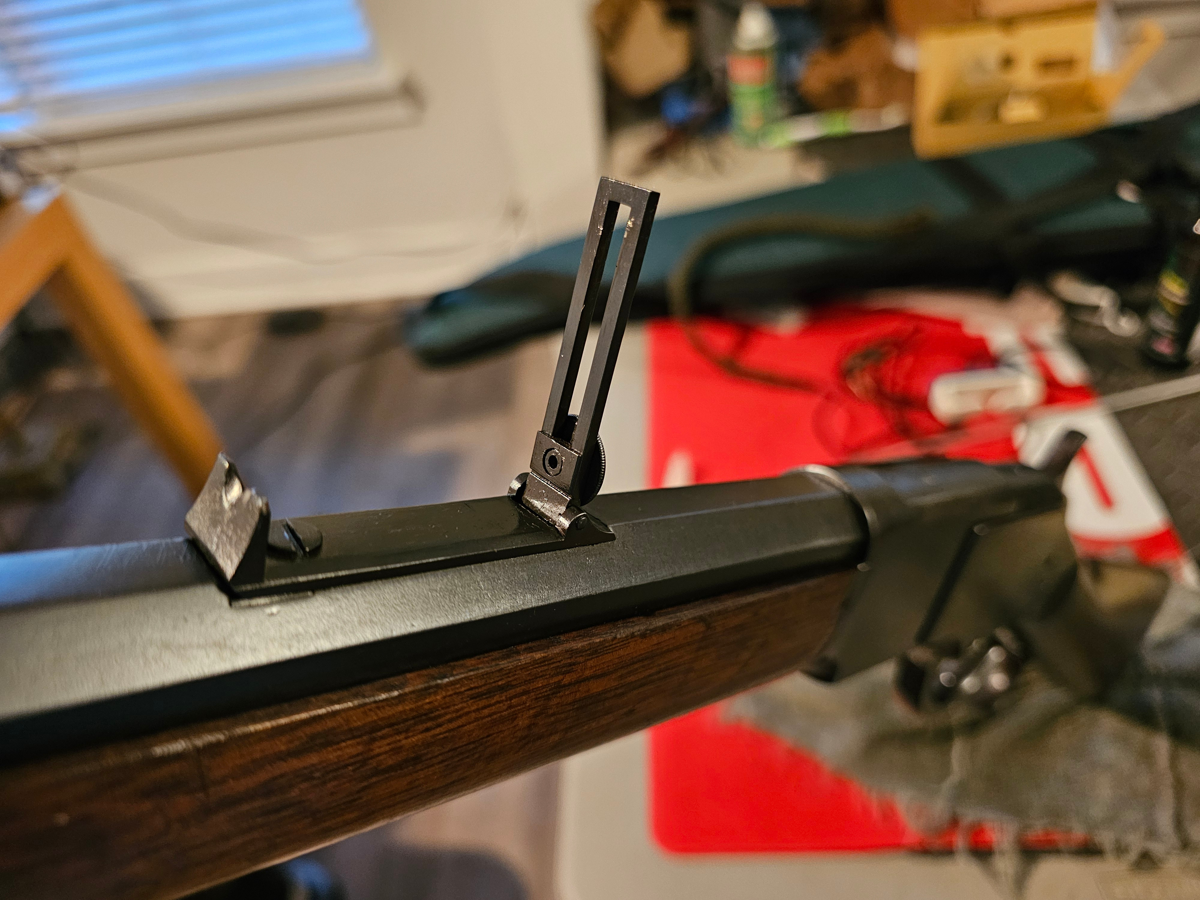 I recently acquired this Winchester First Model 1873, and everything (as far as I know) seems in order except the sights. The previous owner said he replaced the front sight with an aftermarket but said it was the same style that was on it. The only info I could find on the rear sight is what appears to be a Remington Rough and Ready barrel sight. Should I just leave it as is or is it best to find the correct sights for a First Model 1873 and what would they be? Year of manufacture is 1875, 24″ barrel rifle