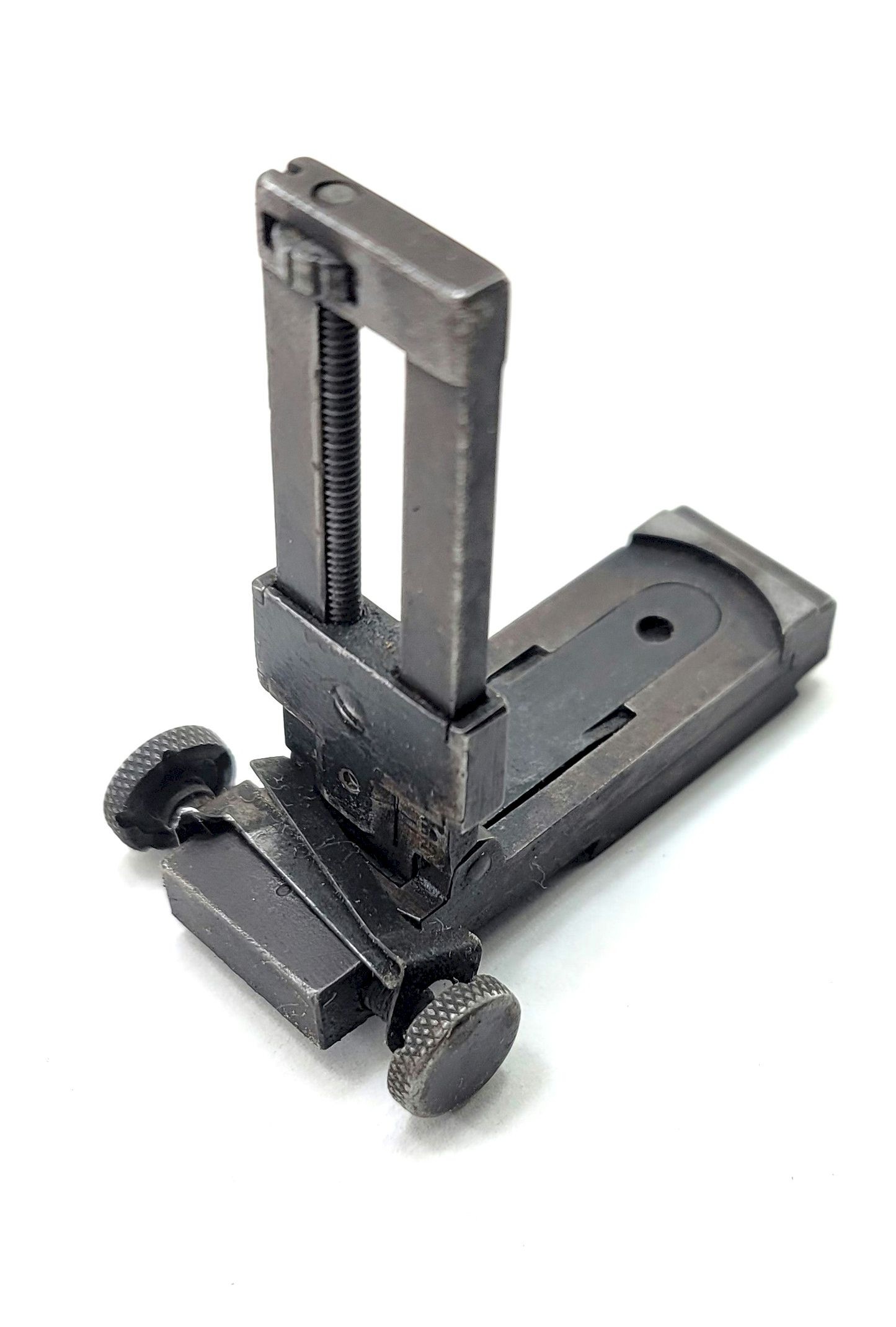 Regardless of that, the 82A “ladder” sight is windage adjustable by the rear/lower left and right knob and the elevation is adjustable with the upper left knurled knob at the top of the ladder sight.