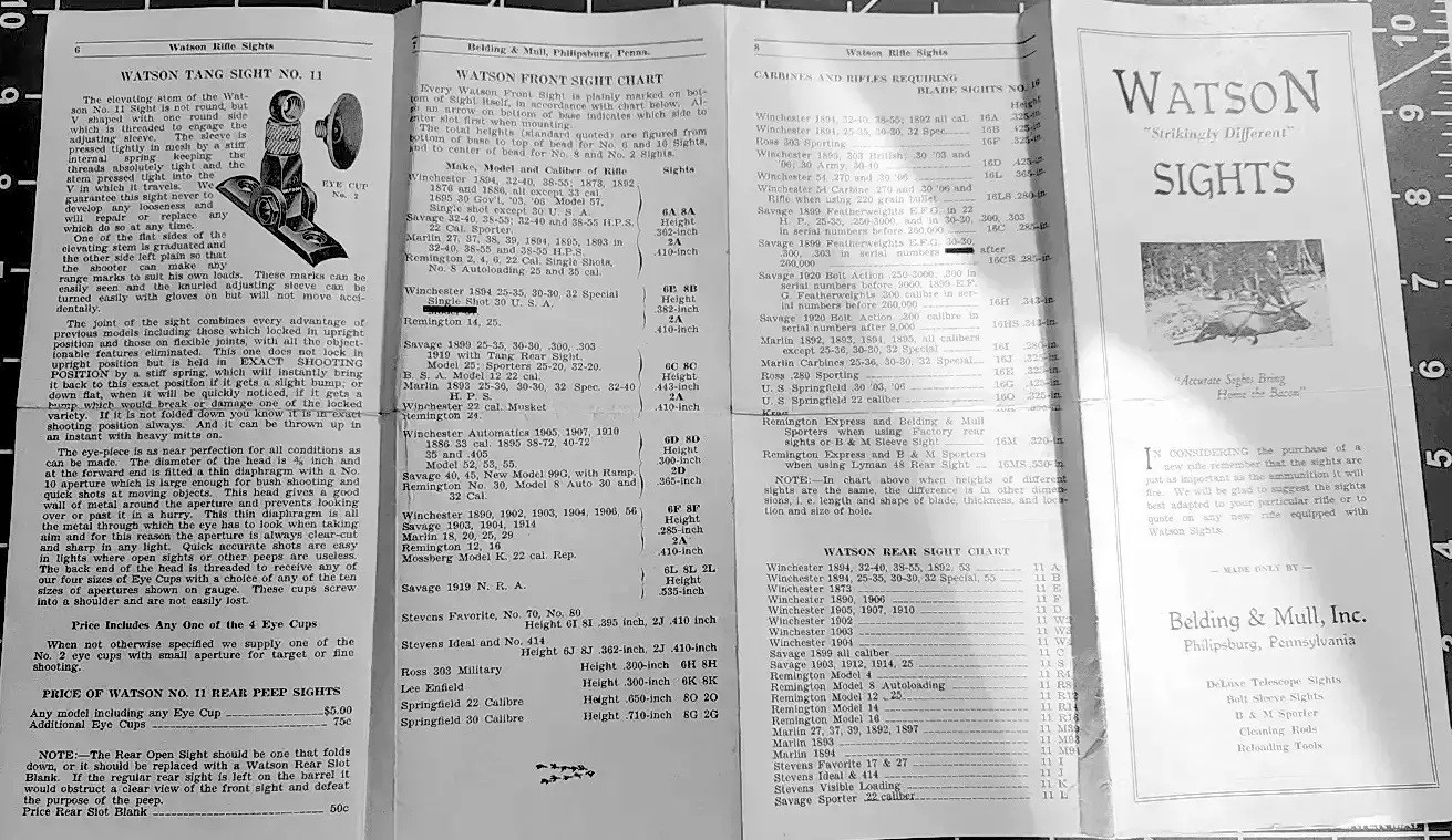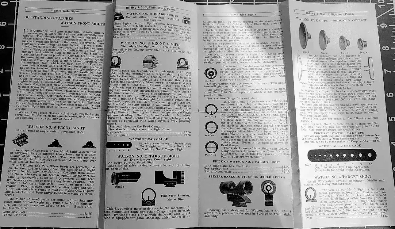 I subsequently found photos of a Watson/Belding & Mull catalog that lists the two Springfield sights. It’s a bit difficult to read, but the best I’ve got.