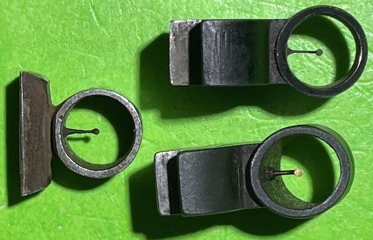 -Qty 2, Lyman #17 target front globe’s for 1903 Springfield – Predecessor to the 17A. These have a neat flipping combination dual aperture similar to a Lyman No,5 front sight. Would make a nice addition for a 1903 target rifle. See info pertaining to #17 & “No,17 special” for the 1903 Springfield in Stroebel book. The one mounted on the 1903 base has the early flip change combination pin & ball post or aperture reticle. Unmounted one has flip combination with later combination style flat top partridge post or aperture reticle.