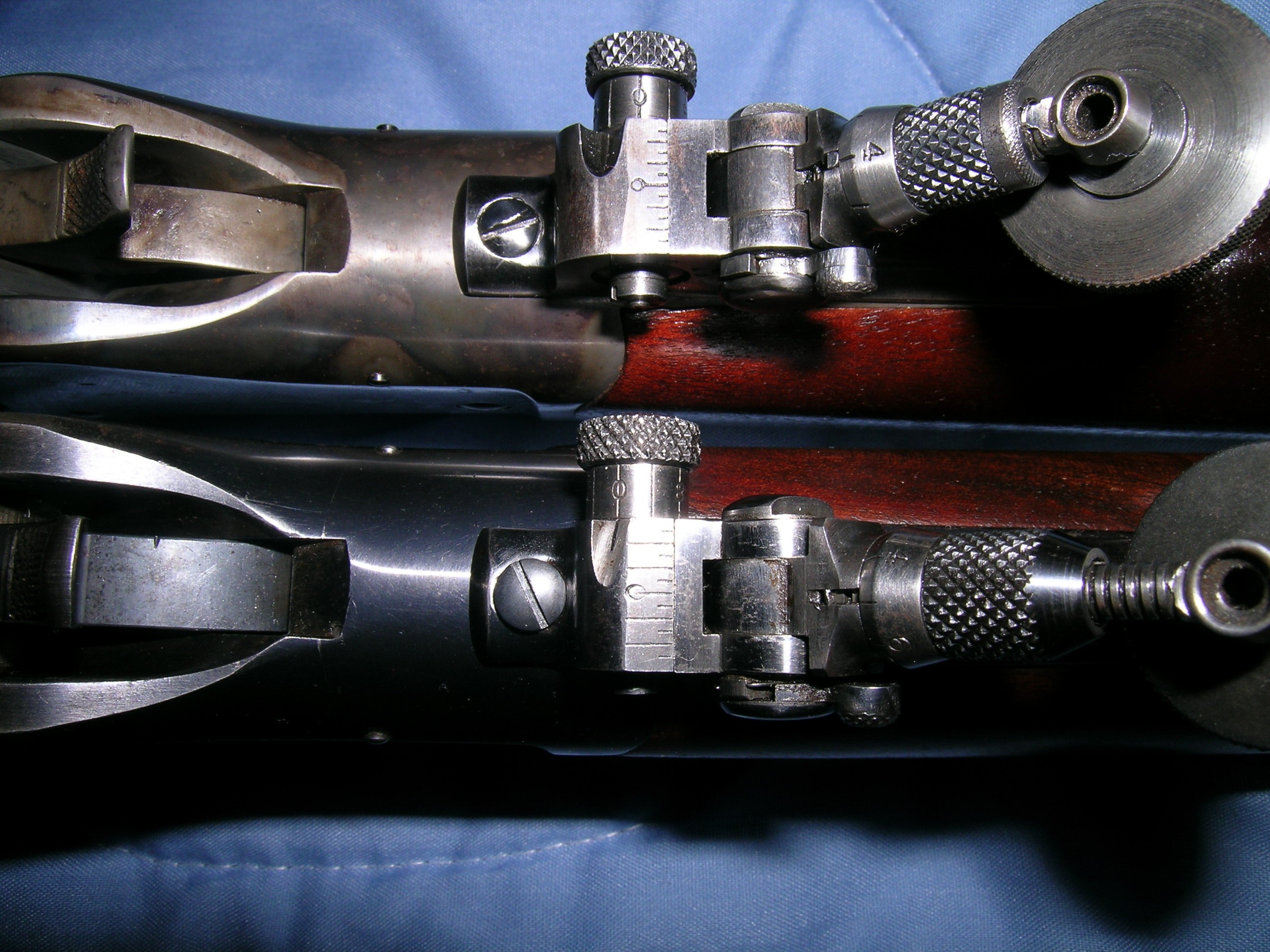 If I am target shooting, I much prefer the tang sight (a Lyman No. 2/2A or a Lyman No. 103). The tang sight is closer to my eye, has a slightly longer sight radius, and it allows for a finer sight alignment. I have Lyman No. 103 micrometer tang sights on (4) different rifles.