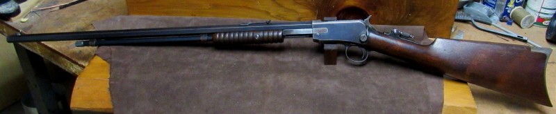 I would like to sell my nice Winchester Model 1890, 2nd model, SN 162791 (1903) in .22WRF with 24” octagon barrel. Includes tang sight, Sheard flip up/down front sight and original barrel mounted rear sight. About 50 – 60% of the original blue on receiver, barrel and mag tube. Wood has nicely aged original finish. Very good bore.