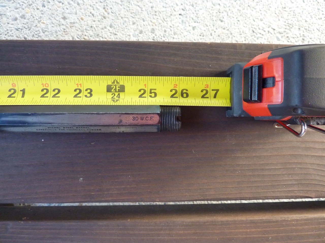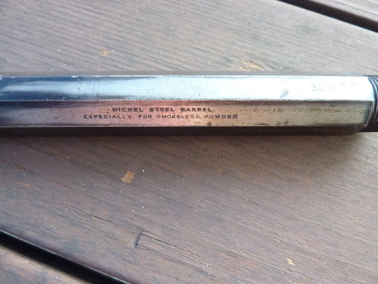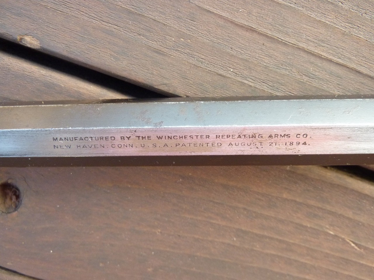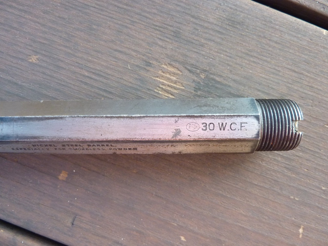 OfflineSelling early factory original Winchester Model 1894 26″ octagon barrel chambered in 30 W.C.F.. Barrel has lots of original blue finish with some bluing loss around caliber markings, barrel address markings, etc. All dovetails are factory correct–no added holes, dovetails, etc. Bore has visible rifling with roughness throughout. Would be an excellent candidate for a re-line / restoration project. Asking $150 plus $20 shipping. Please send me a PM if interested.