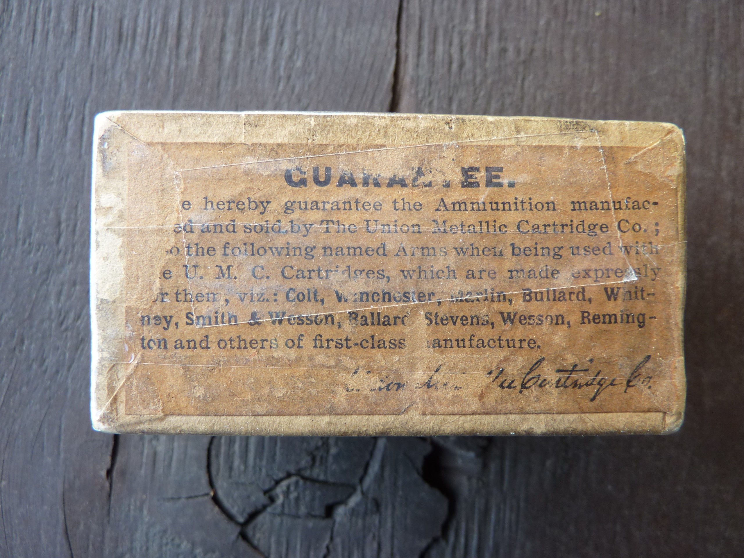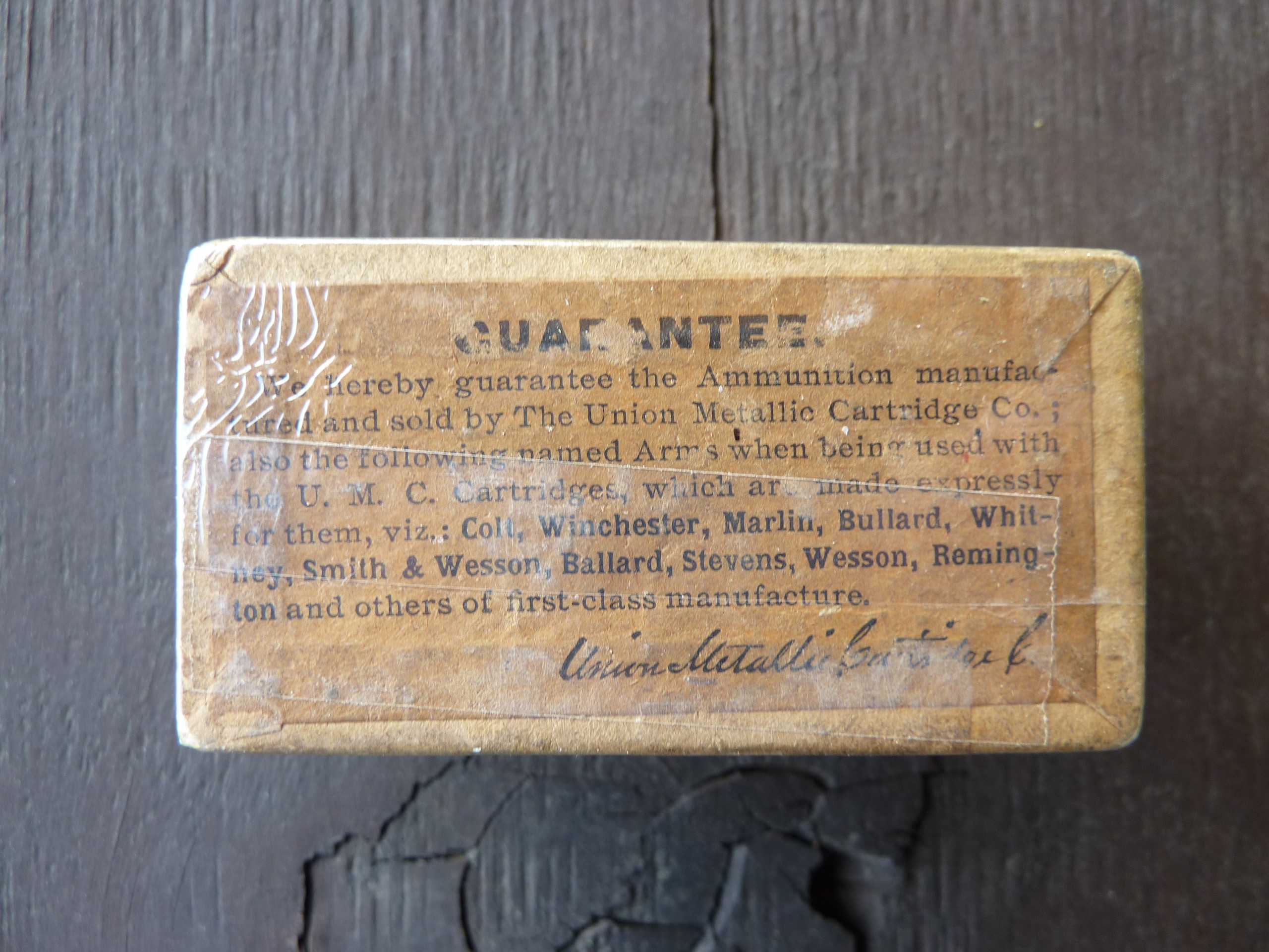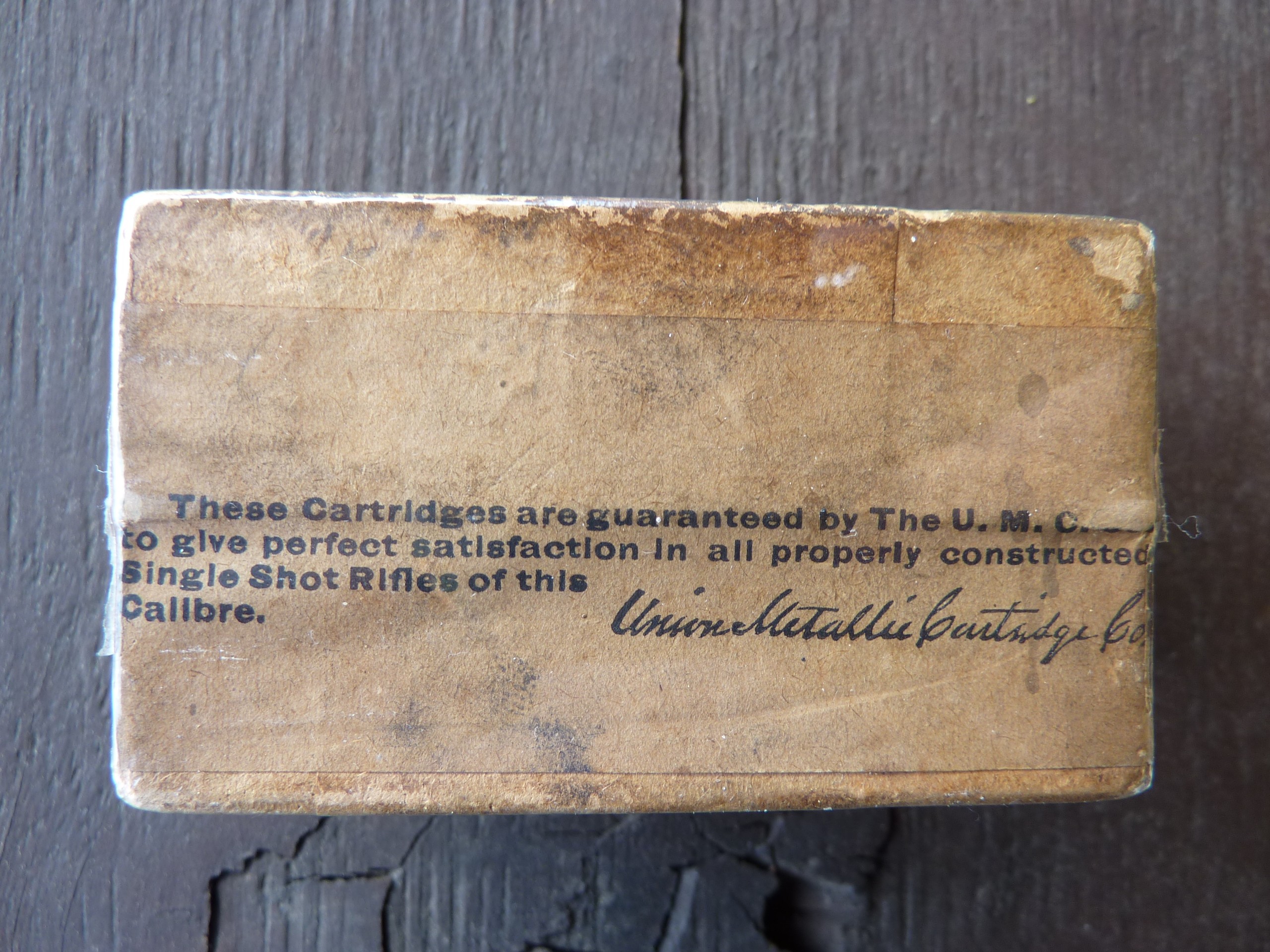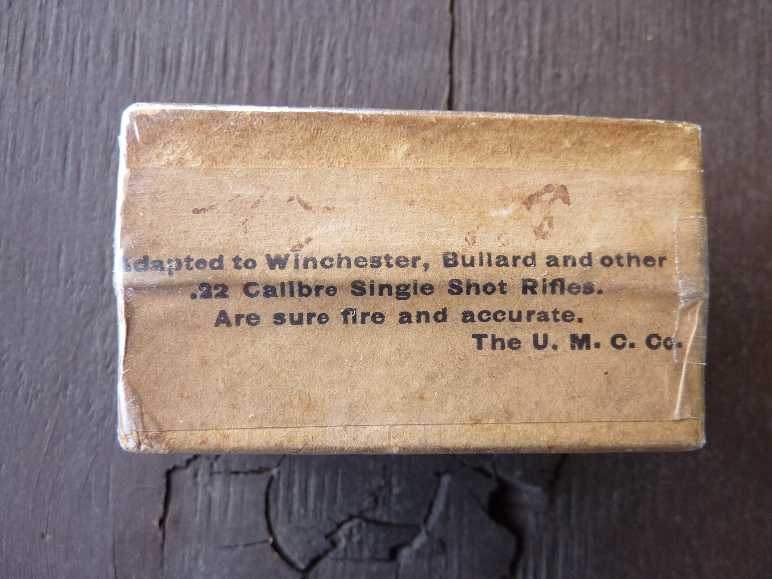 OfflineSelling two very old SEALED / UNOPENED full 50-round boxes of UMC (Union Metallic Cartridge Co.) .22 Winchester Single Shot Central-Fire Cartridges. Both boxes are in excellent condition and still sealed and never opened since they left the UMC factory +/- 125 years ago. Both boxes are in protective plastic wrap with no tape touching the boxes (tape is only on the exterior of the plastic wrap). I took photos of all sides of the boxes. Asking $225 each shipped or $425 shipped for both boxes. Please send me a PM if interested.