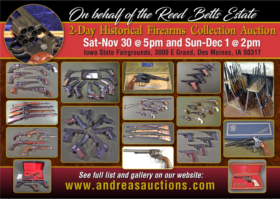 Featuring the lifetime collection of the late Reed Betts – a well-known local firearms enthusiast and gunsmith. – this collection features many Winchester model shotguns and rifles of all varieties. See attached flyer for a small sampling – there are over 550 lots of firearms during this two-day event.![]()