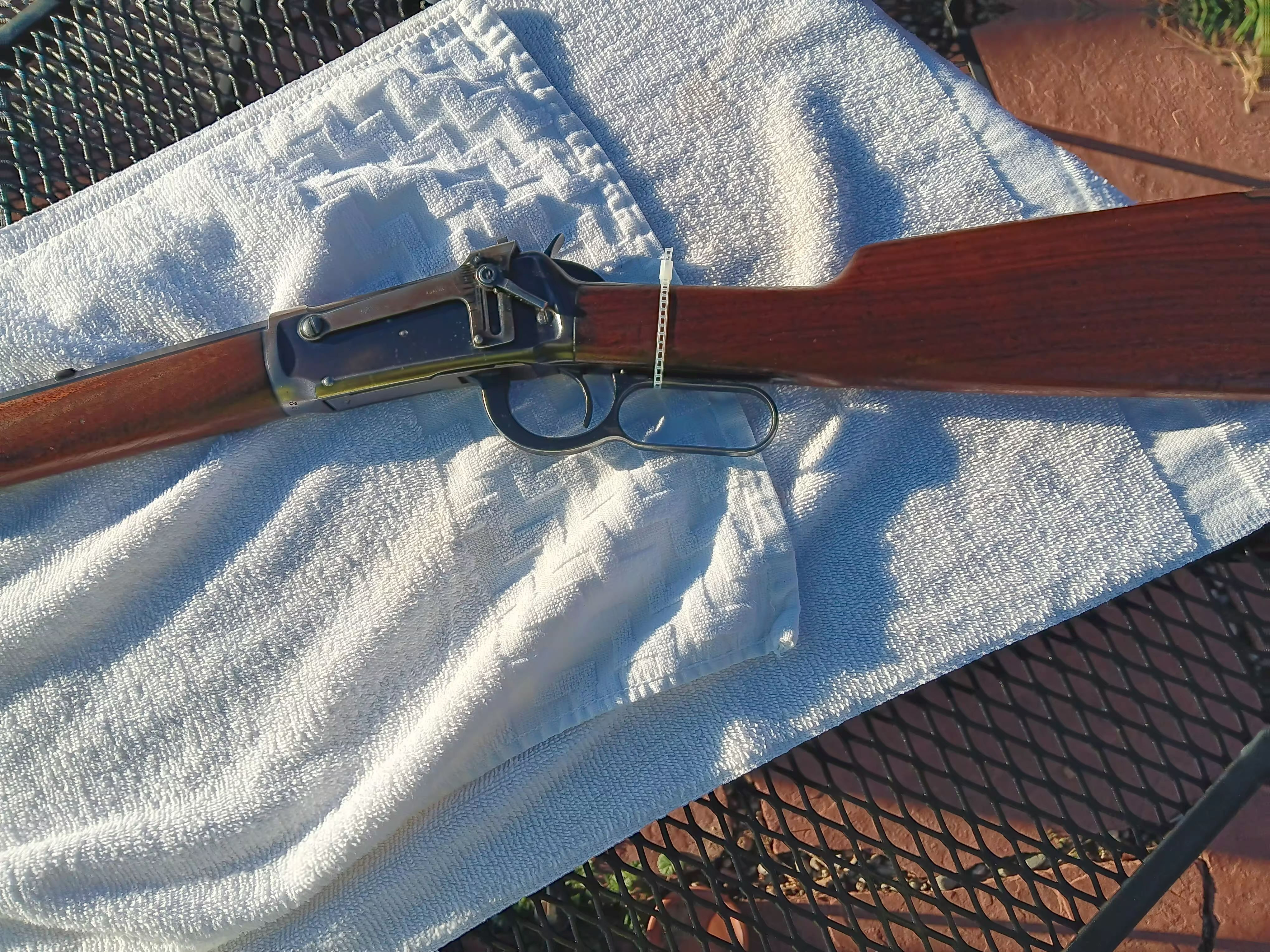 Made in 1918, has 8 3/8 forearm, Lyman 21 sight, 22″, 38-55 fine bore 4500.00 shipped–Bill