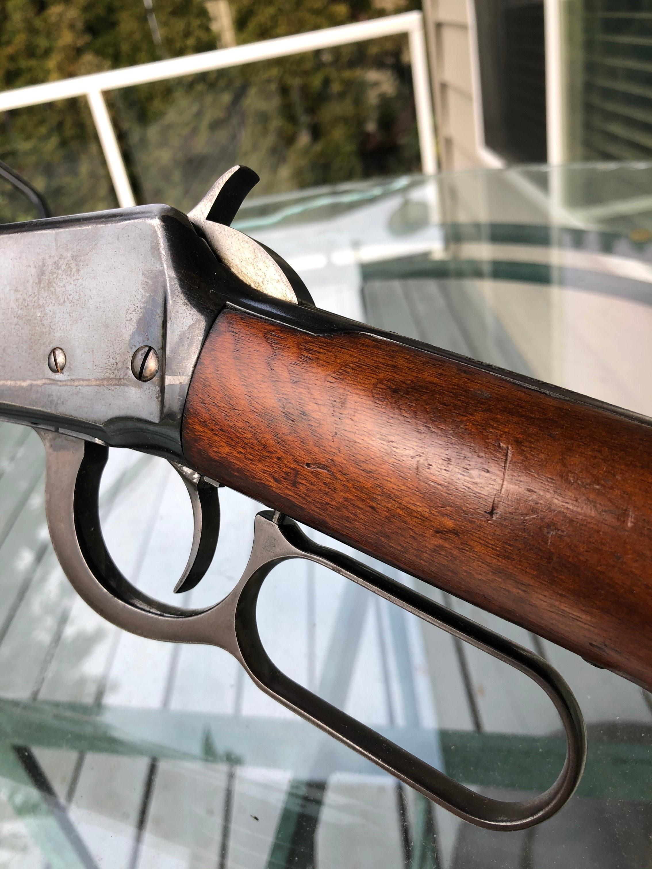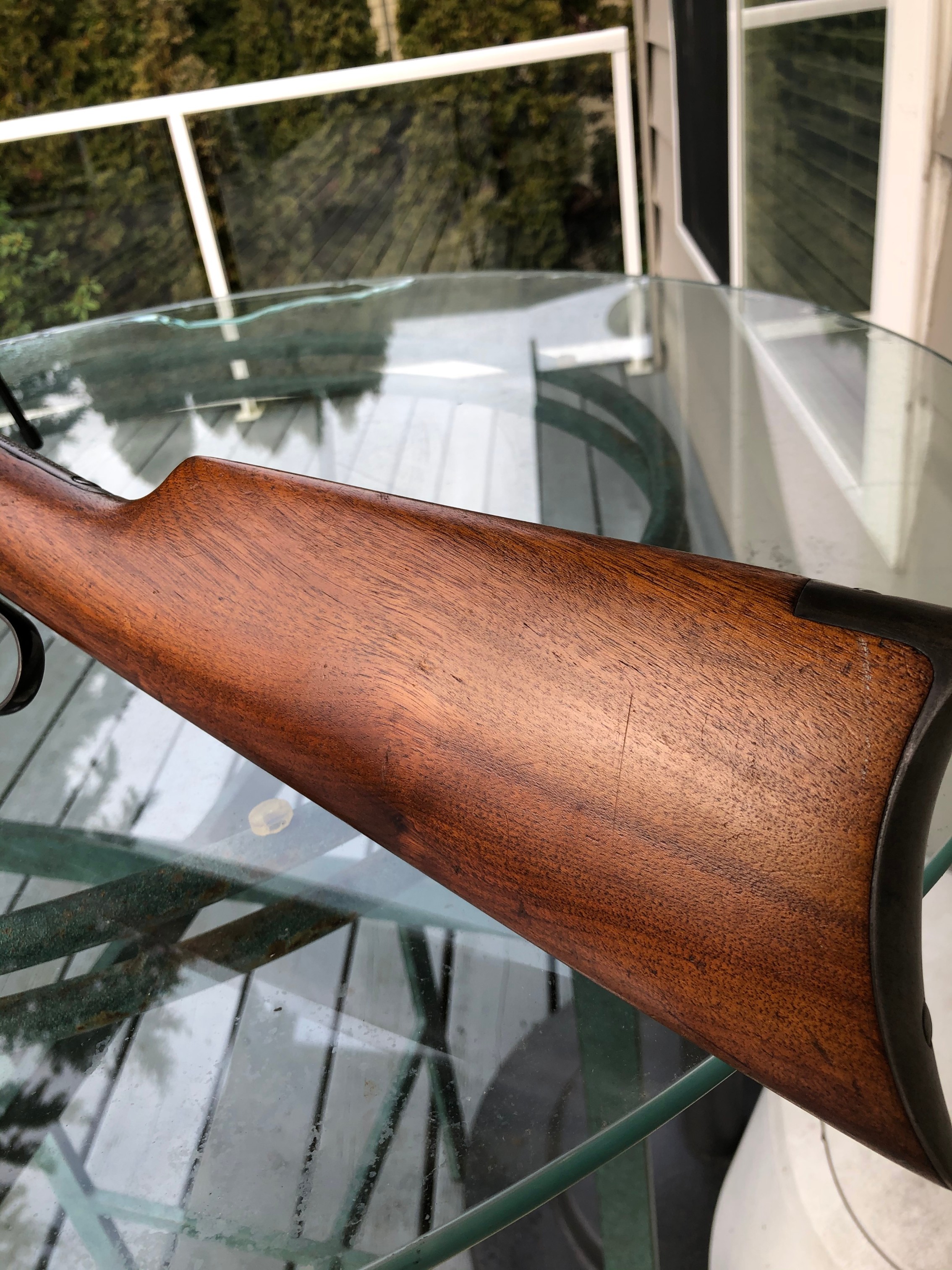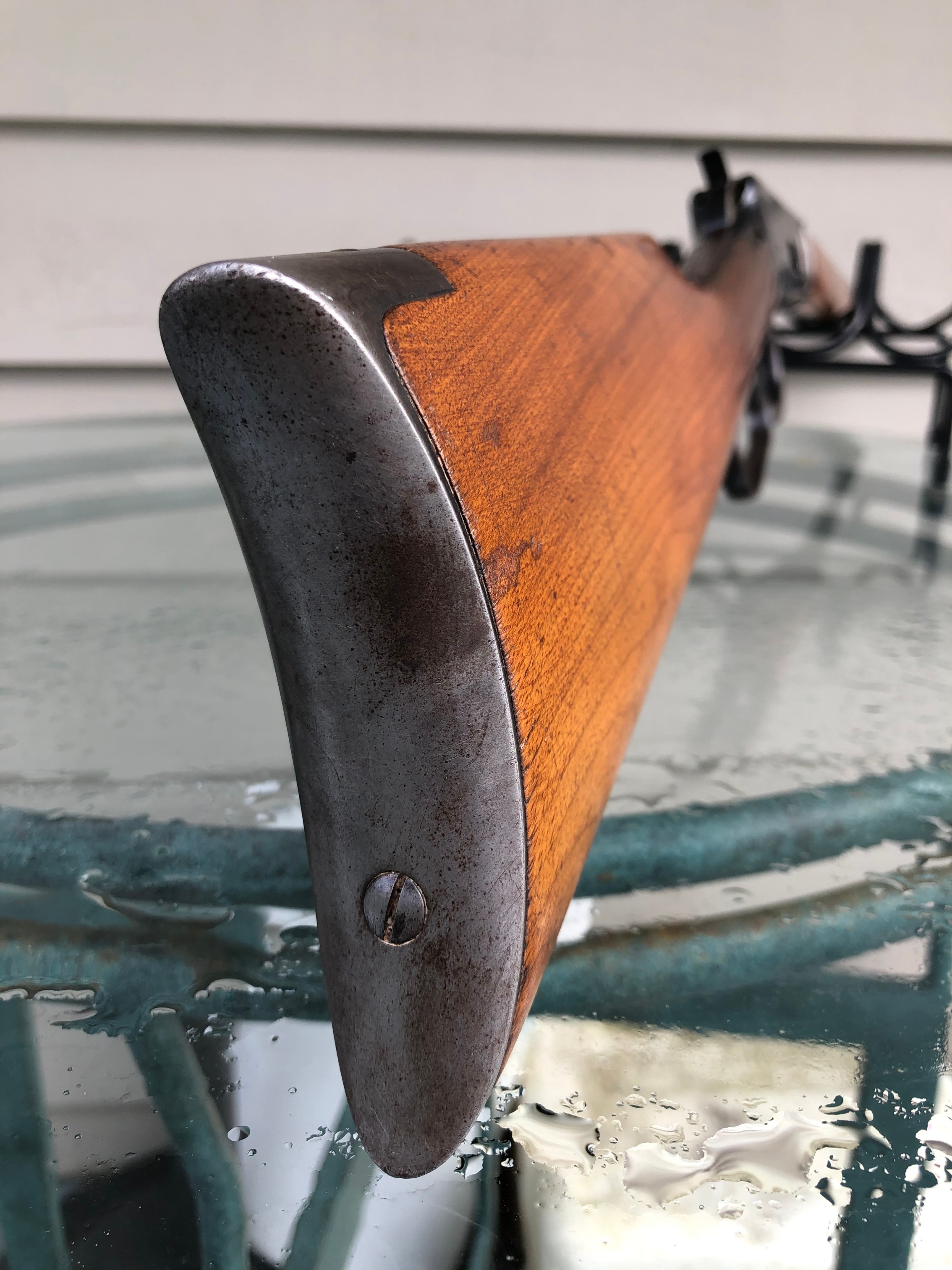 OfflineMore pics would be helpful. I would like to see how the wood fits the metal. Looking at pic #3 it appears that the wood isn’t high and proud to the metal, like perhaps it was sanded at one time. Could just be that one pic, but without more it’s hard to tell. Looks like it still has lots of blue and I like the rear sight. How is the bore?